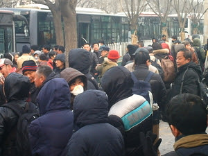 金月花说:“进入‘三骗’胡同的路口有很多警察和警车堵住,昨天(28日)我们登记后,就聚集在马路对面抗议,上海有三四百人,全国的有一千多人,到了5点,警察就开始清场,到久敬庄登记后,不让地方接走,大家自己出去。等待‘两会’去找官员。”