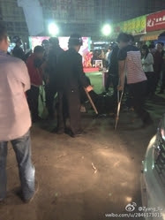 3月28日广东省中山市小榄镇宝丰广场几个卖艺的残疾人遭到特警暴力殴打,残疾人堵车抗议,引发数百人围观,警车玻璃被愤怒的人群砸烂。事件持续两个小时后,当局派出大批特警强行驱散人群,多人被抓走。(网络图片)