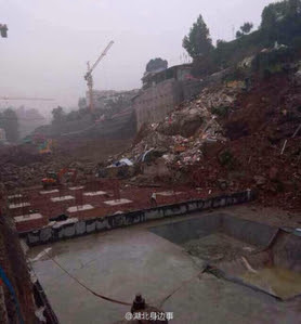 陆媒报导称,27日6时05分许,湖北省恩施州宣恩县珠山镇白鹤井社区一个建筑工地旁边突然发生山体滑坡,将4栋居民楼房压垮,11人被埋废墟下。至当日10时有4名伤者获救,其余7人死亡,死者中包括3名儿童。