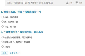 与此同时,大陆某主要门户网站就这一话题开设民调调查,问题之直接让外界感到江真的已经完了。“1.如果有机会,你会“强搂宋祖英”吗?”2.“强搂宋祖英”被拘留免职,你怎么看?”该调查在网站已经存在了两天,只是无法查看结果。
