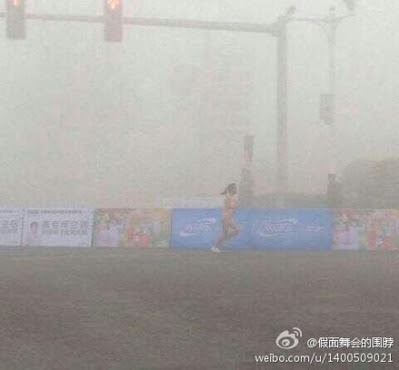 天津市民马先生对大纪元记者表示,天津市25日的阴霾非常浓重,能见度只有10米左右,说马拉松比赛是“瞎跑”很贴切。